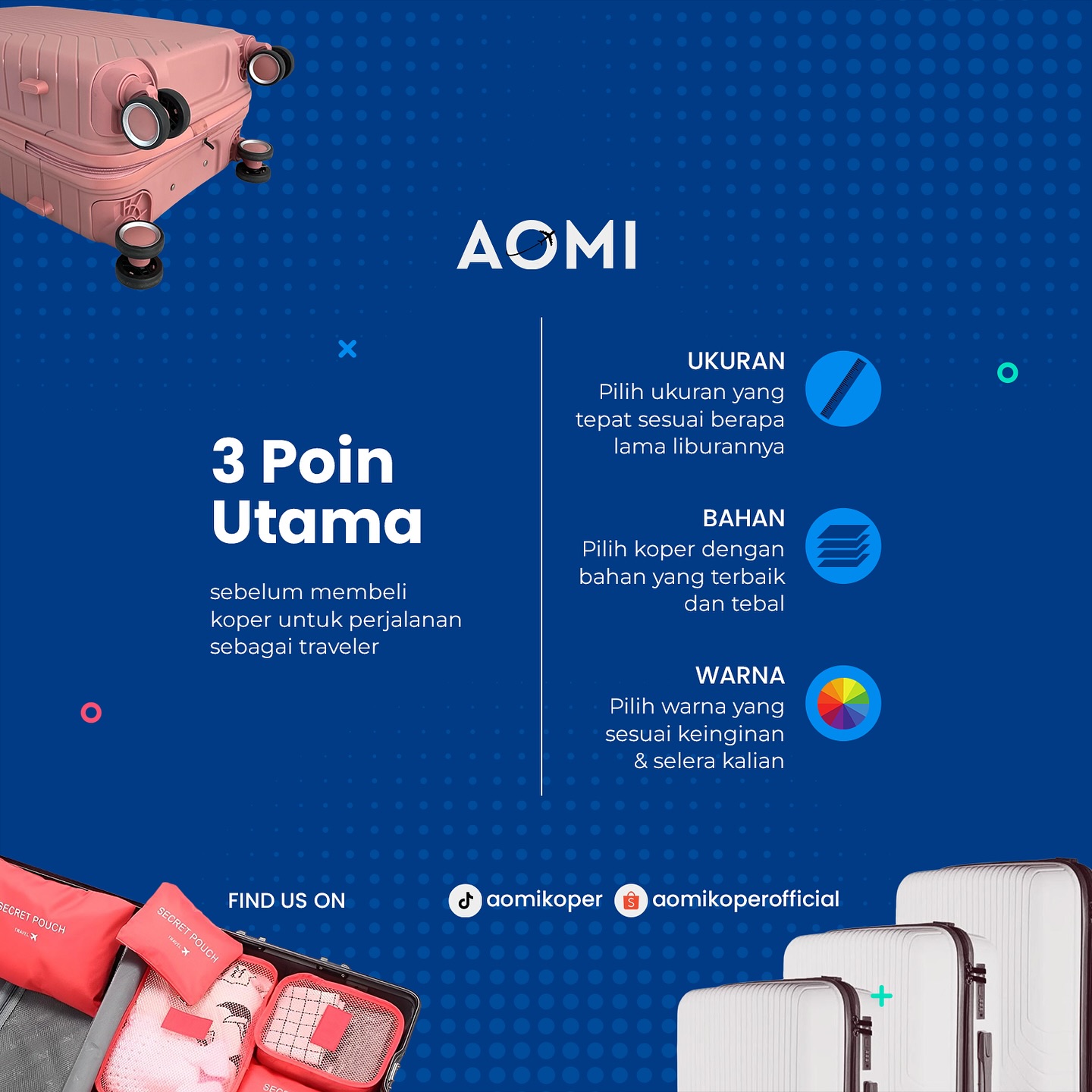 Aomi Official adalah perusahaan yang bergerak di bidang produksi dan distribusi tas travel dan koper berkualitas tinggi. Sejak didirikan, perusahaan kami telah berkomitmen untuk menyediakan produk yang menggabungkan fungsionalitas, keamanan, dan gaya untuk memenuhi kebutuhan wisatawan modern.
